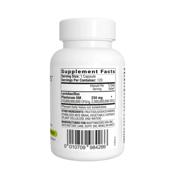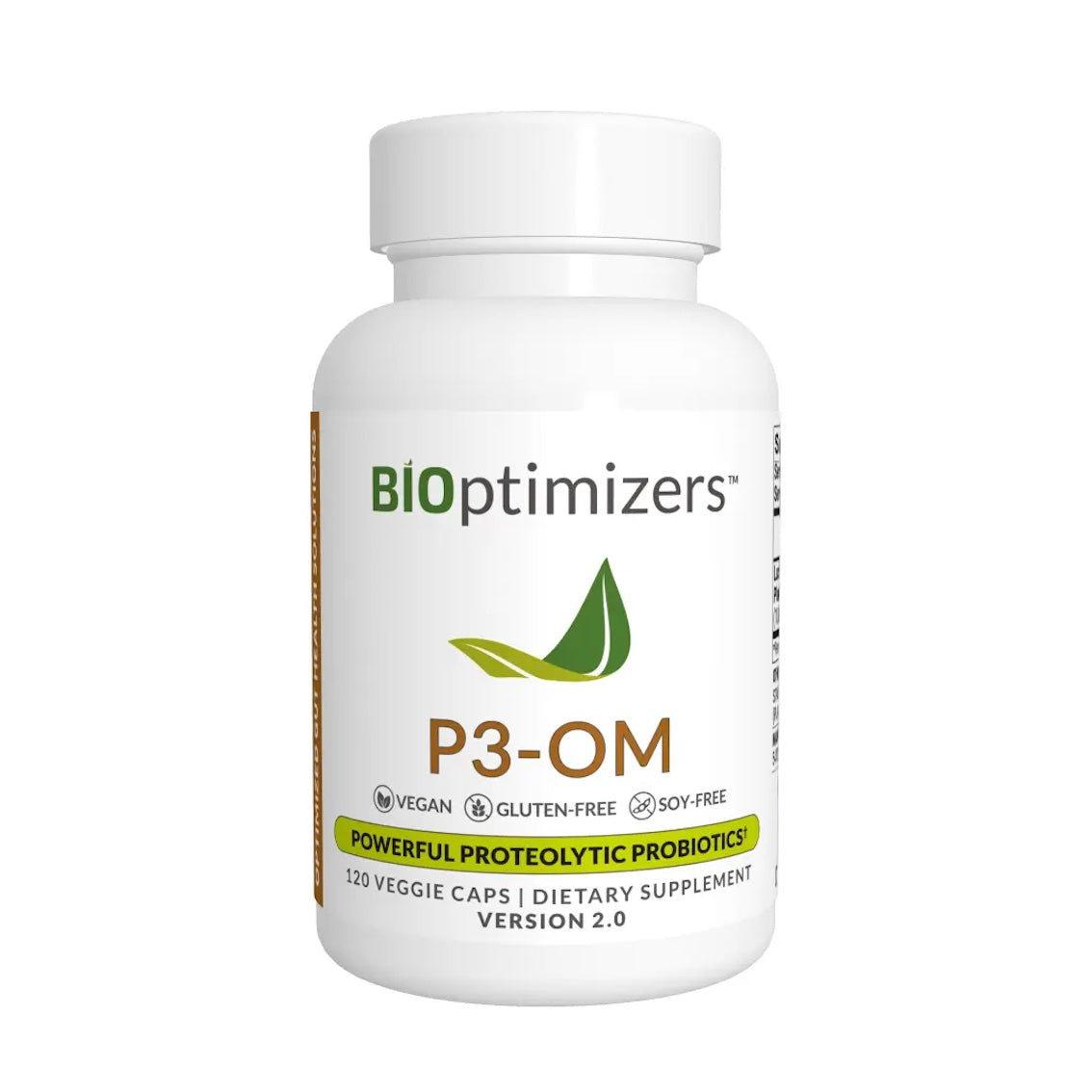 BiOptimizers P3OM features a new patented SUPER-strain designed for maximal protein digestion and assimilation. This freeze-dried probiotic culture remains potent throughout your digestive system and can multiply in your gut, reducing the need for high CFUs compared to other probiotics. With no refrigeration required, it's vegetarian-friendly, lactose-free, and 100% plant-based. P3OM acts as "good guy" bacteria, helping to combat harmful bacteria and support a balanced gut microbiome. For optimal results, take it on an empty stomach or with food to enhance digestion.