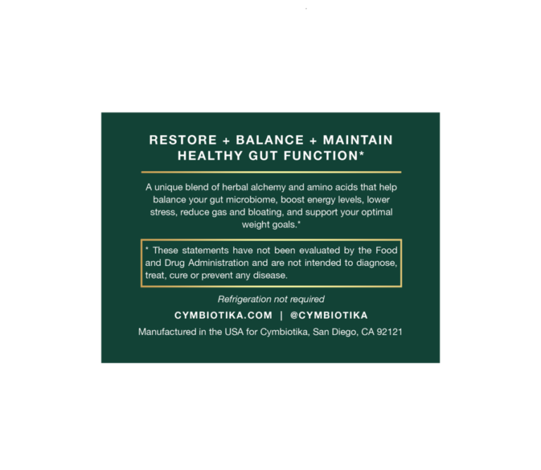 Cymbiotika’s Probiotic is a 4-in-one gut health solution made from the highest quality ingredients found in nature that work synergistically together to restore, balance, and maintain healthy gut function. This proprietary formula includes 19 powerful probiotic strains, trademarked plant-based prebiotics, and a unique blend of herbal alchemy and amino acids.