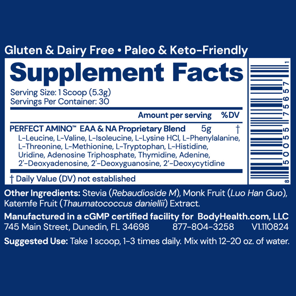 PERFECT AMINO® dietary supplement is utilized up to 99% to help build new protein, muscle & collagen without the caloric impact & without breaking a fast.