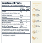 Synergistic Super-Nutrients – CoQ10 can dramatically affect mitochondrial energy-producing capacity. Pyrroloquinoline quinone (PQQ) can support mitochondria protection against oxidative damage, while resveratrol is known as a healthy aging antioxidant.